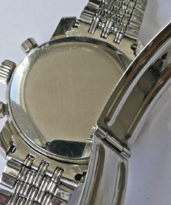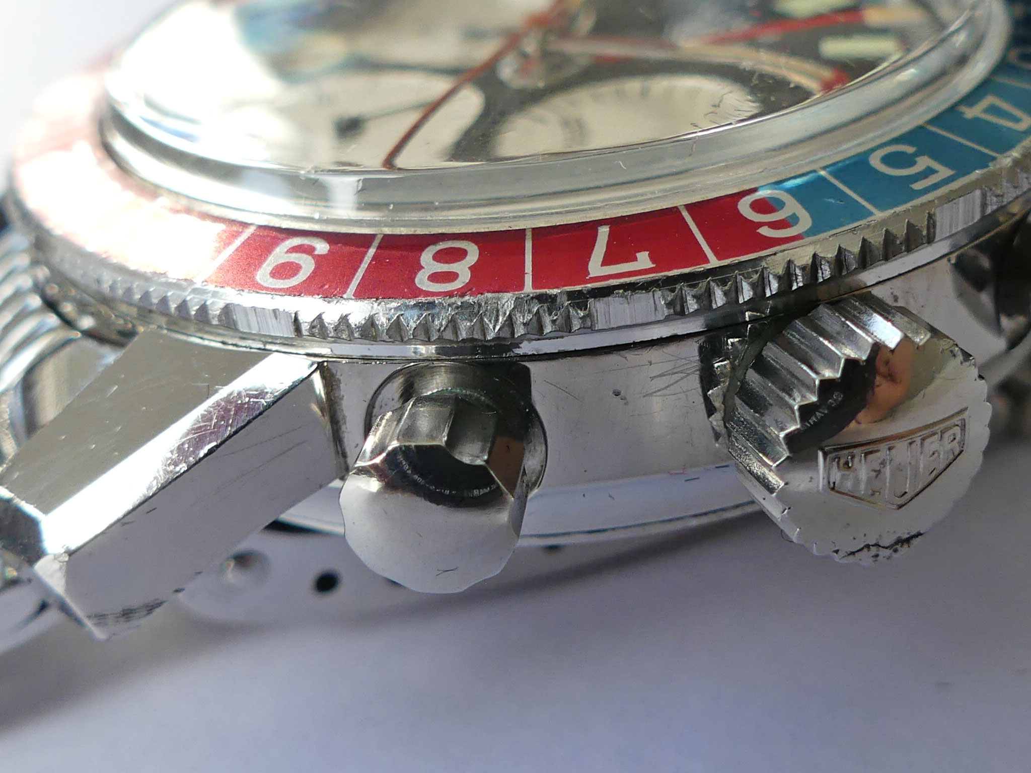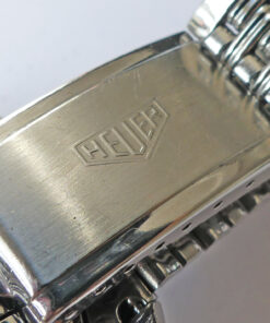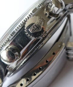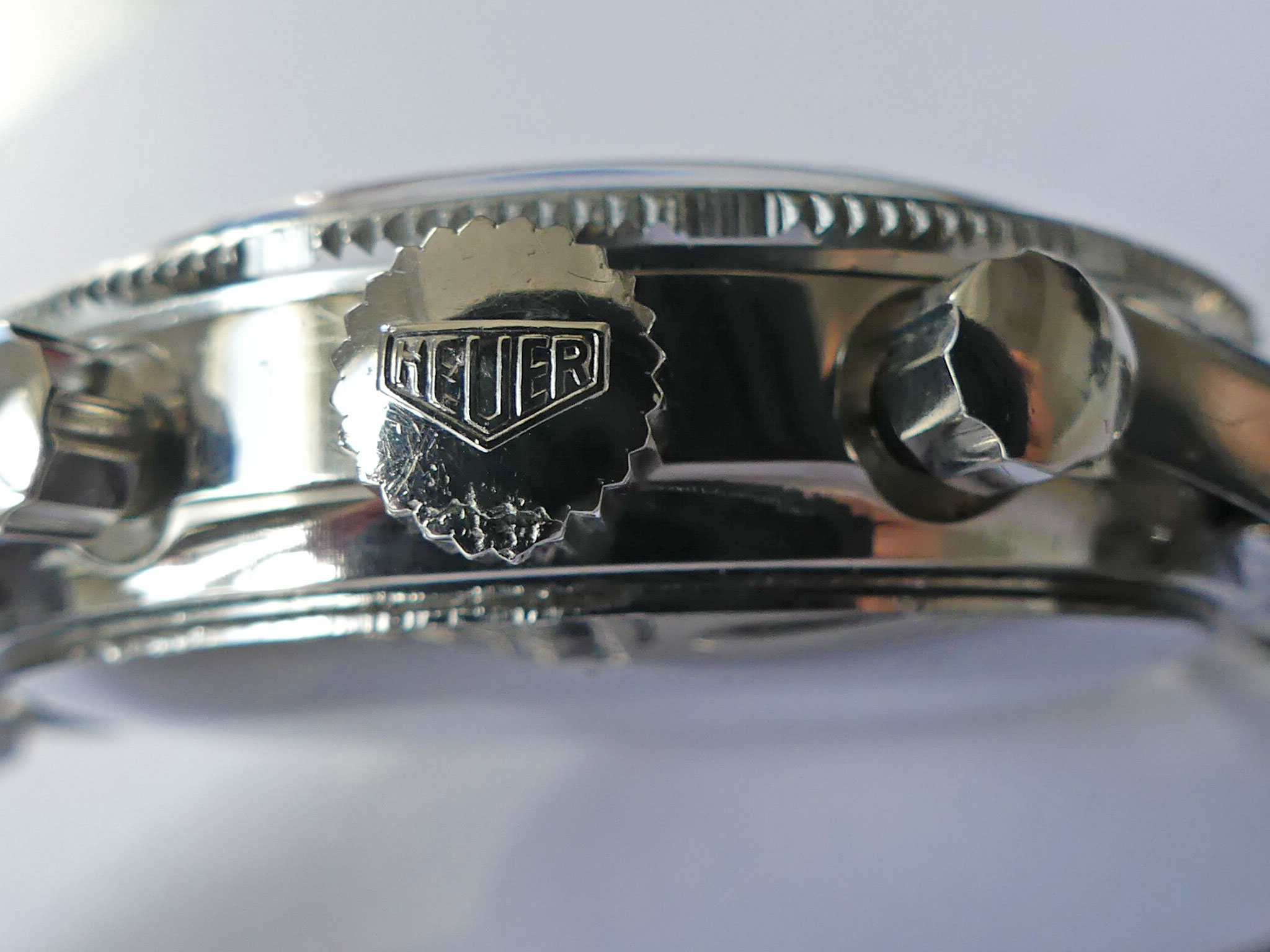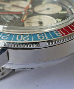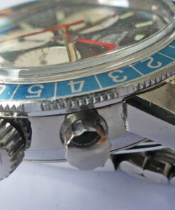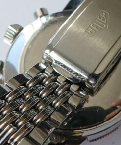 Perfekte Heuer Autavia GMT “Air France” mit der Referenz 2446C GMT. Besonderheit: Compressor Case und roter GMT Stundenzeiger. Die Autavia mit perfekter GMT Lunette ist in einem nahezu ungetragenen Zustand. Eine Rarität mit Handaufzugwerk Valjoux 72 GMT von 1970. Der Chronograph mit Kunststoffglas hat drei weiße Register sowie ein schwarzes Zifferblatt und einen roten Zentral-Chronozeiger. Technisch und optisch einfach perfekt. BESONDERHEIT: das originale Edelstahlarmband.